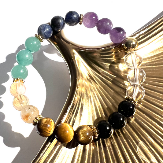 SUN COLLECTION - 7 Chackra Gemstone & Gold Bead Stretch Bracelet