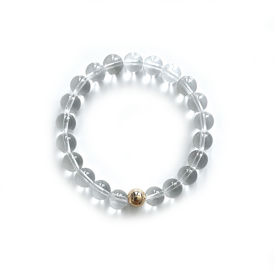 SUN COLLECTION - Natural Clear Quartz & Gold Bead Sun Stretch Bracelet