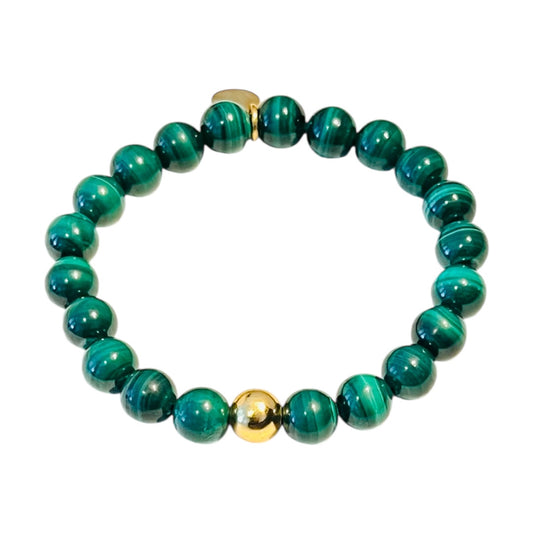 SUN COLLECTION - Natural Malachite & Gold Bead Sun stretch Bracelet