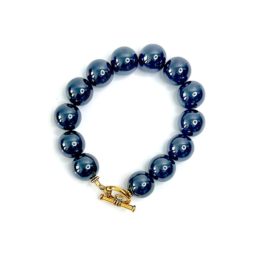 Graceful Strength - Elegant 14mm Hematite Bracelet with Gold Coiled Toggle Clasp