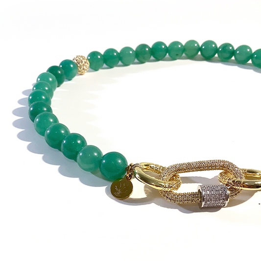 Monogram Green Aventurine 33 Bead Meditation Loop Wristlet