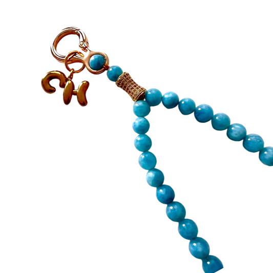 Monogram Aquamarine Quartz 33 Bead Meditation Loop Wristlet