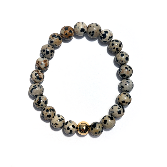 SUN COLLECTION - Natural Dalmatian Jasper & Gold Bead Sun Stretch Bracelet