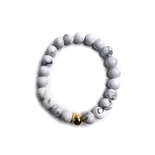 SUN COLLECTION - Natural Howlite & Gold Bead Sun Stretch Bracelet