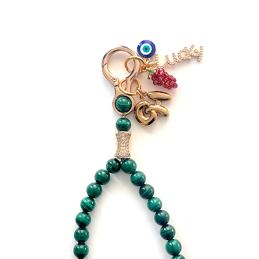 Monogram Malachite 33 Bead Meditation Loop Wristlet